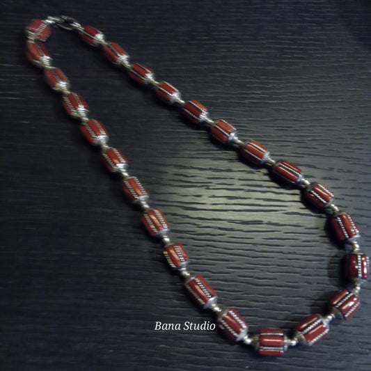 Silver coral beads.